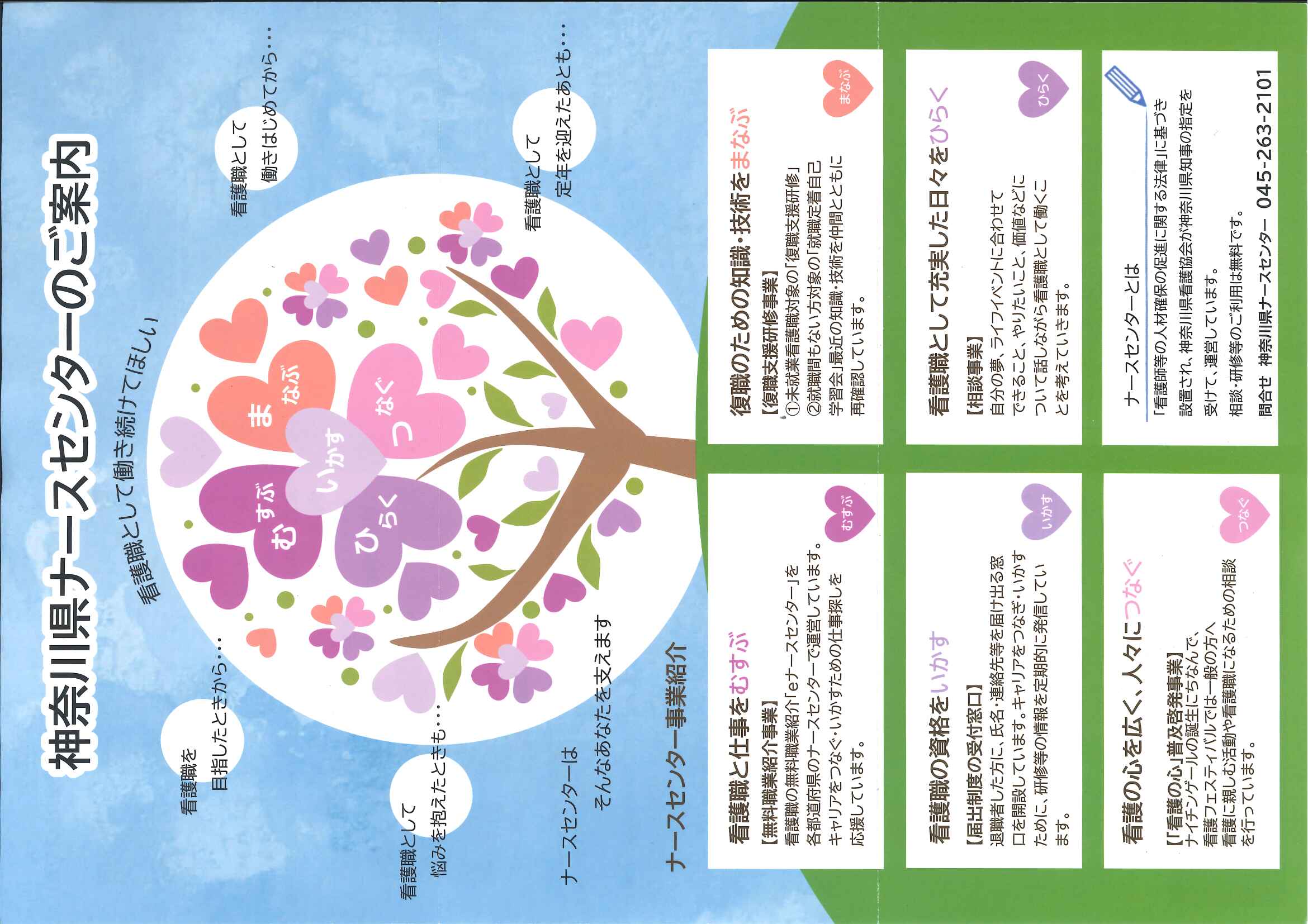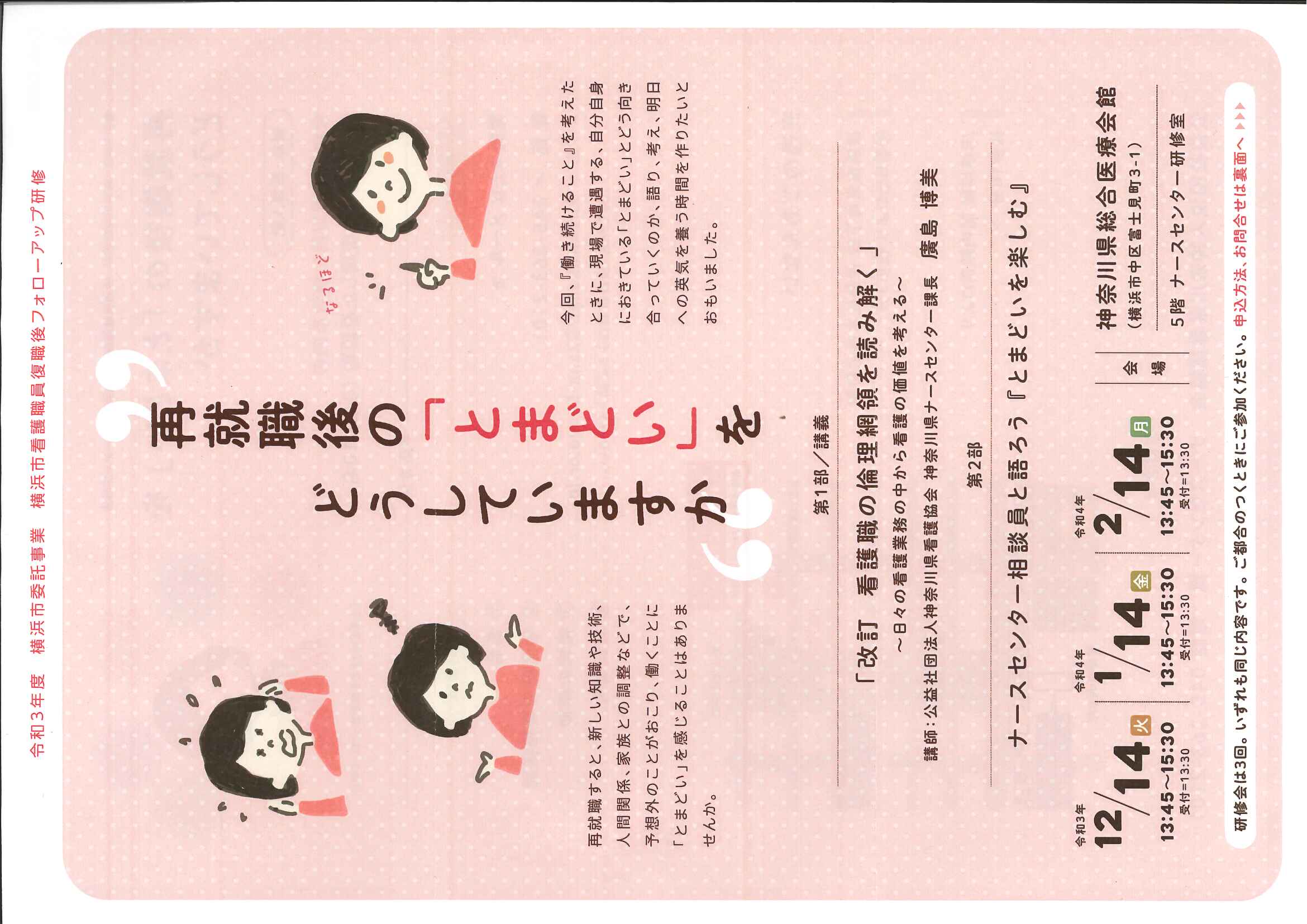 神奈川県ナースセンター(就職支援)の案内と令和3年度横浜市看護職員復職後フォローアップ研修の案内を